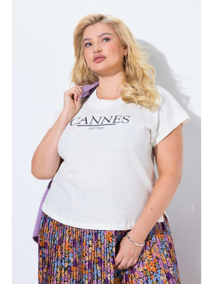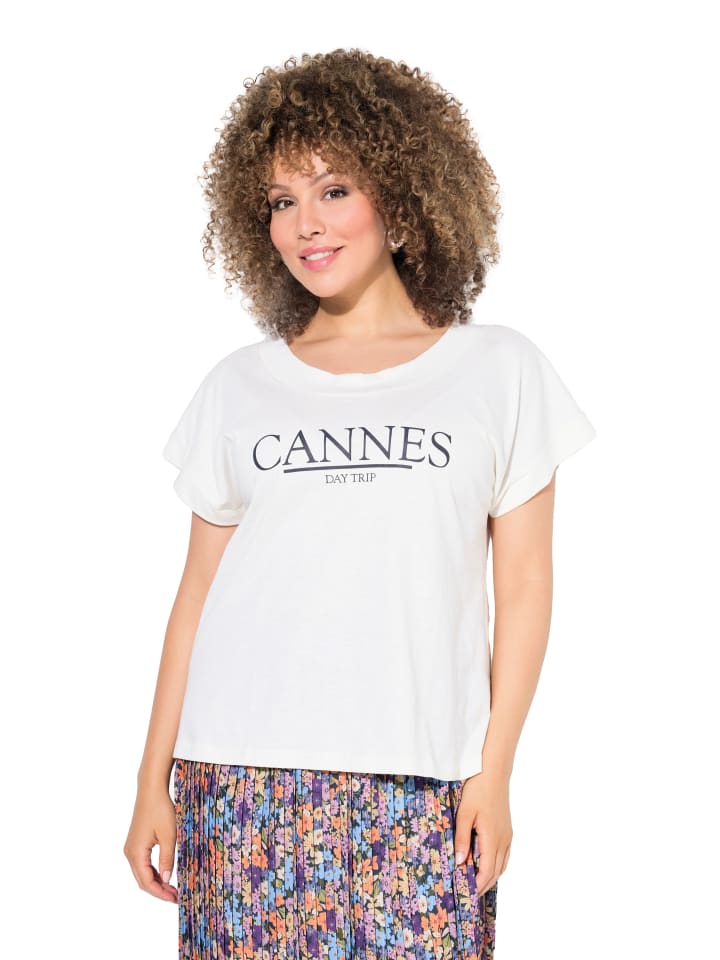 Футболка большого размера из мягкого трикотажного трикотажа с тонкой текстурой и эффектностью. Круглый вырез, плечи внахлест, полурукавки.материал