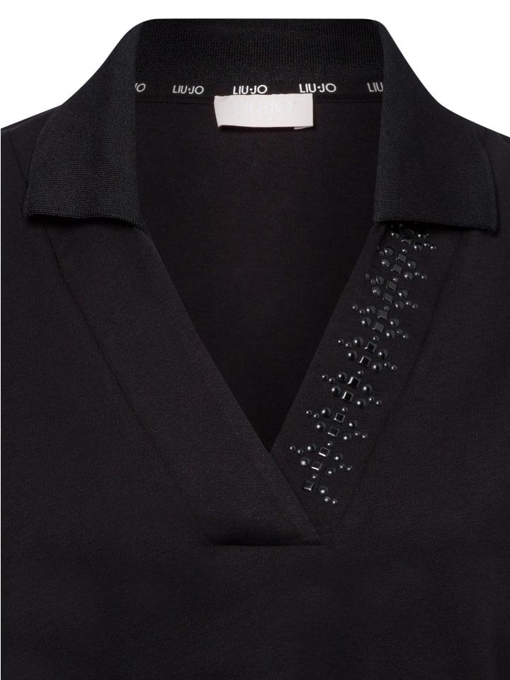 Футболка Liu-Jo сочетает в себе спортивную элегантность и изысканность благодаря уникальному воротнику в горошек и сверкающим декоративным камням на вырезе.
