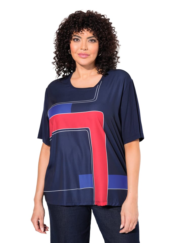 T-Shirt, Classic Fit. Лицевая сторона из мерцающего атласа с графическим рисунком. Круглый вырез. Спинка и рукава 3/4 из однотонного джерси, 95% вискозы, 5% спандекса.материал