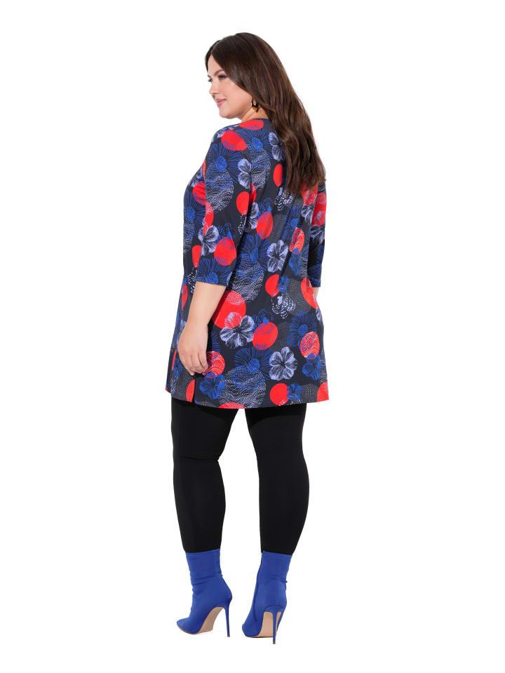 Длинная рубашка А-силуэта с вырезом на груди. Вырез каре, рукава 3/4. Прорези на подоле обеспечивают гладкость корпуса и еще большую свободу движений.материал