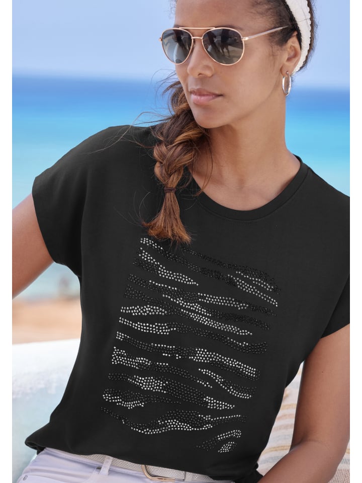 Футболка от Lascana. Дизайн из драгоценного камня спереди. Круглый вырез. Изготовлен из мягкой вязкой смеси.