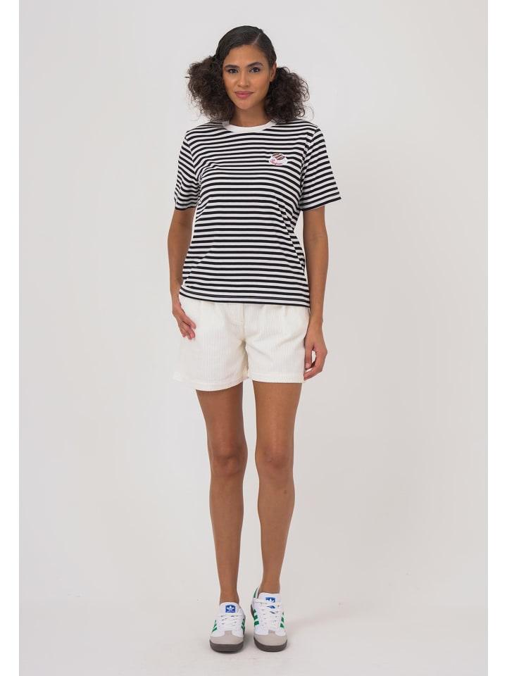 Эта стильная футболка станет прекрасным дополнением вашего повседневного гардероба. Благодаря регулярной посадке и классическому круглому вырезу, он обеспечивает высокий комфорт при ношении и свободу движений. Короткие рукава и удобный материал создают ощущение воздушности, идеально подходящее для теплых дней. Вышитый мотив и полосатый узор придают футболке модный и свежий вид. Он универсален в сочетании и идеально подходит для повседневного повседневного стиля.