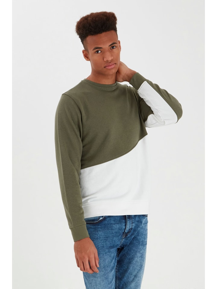 ДЕТАЛИ И ОСНОВНЫЕ МОМЕНТЫ: свитер Sweat в двухцветном цвете в стиле Colorblock, манжеты в рубчик по подолу и рукавам, удобный мягкий свитер, нашивка с этикеткой на боковом шве.