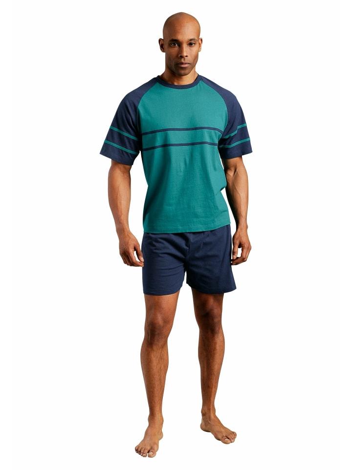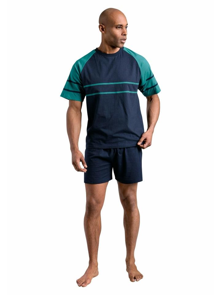 Для тех, кому сплошной цвет слишком скучен, эта короткая пижама из 2 комплектов была создана с использованием красивого сочетания зеленого и темно-синего цветов. Эту пижаму дополняют рукава-регланы, которые придают ей повседневно-спортивный вид.Благодаря дышащему хлопку гарантируется спокойный сон.