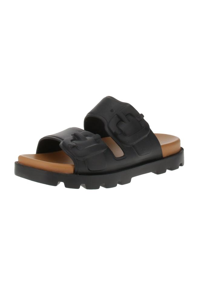 Эти современные женские сандалии от Camper сочетают в себе городской стиль и максимальный комфорт. Легкий верх из ЭВА элегантного черного цвета создает модный образ, а легкая подошва обеспечивает особенно комфортную ходьбу. Эргономичная подкладка из полиуретана облегает фигуру и обеспечивает оптимальную поддержку в течение всего дня. Застежка при этом служит исключительно декоративным элементом, подчеркивая стильный дизайн. Конструкция отличается прочной отделкой и характерным круглым швом, обеспечивающим долговечность. Универсальный компаньон для повседневной жизни и отдыха - стильный, удобный и идеально подходящий для теплых дней.