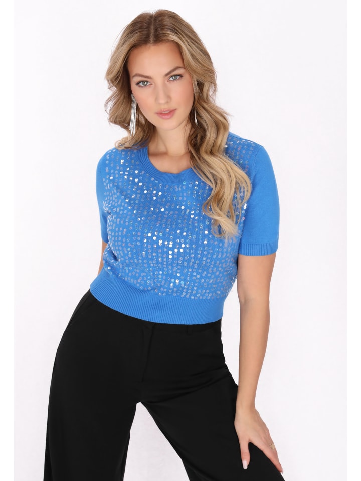 Refresh your closet with this fashionable top designed for everyday fashion. It has a regular fit and round neckline, short sleeves and a ribbed hem for added texture. Sequin embellishments provide a touch of sparkle, making it the perfect choice for any fashion lover who appreciates comfort and a stylish look. It is part of the Comfortable Collection.