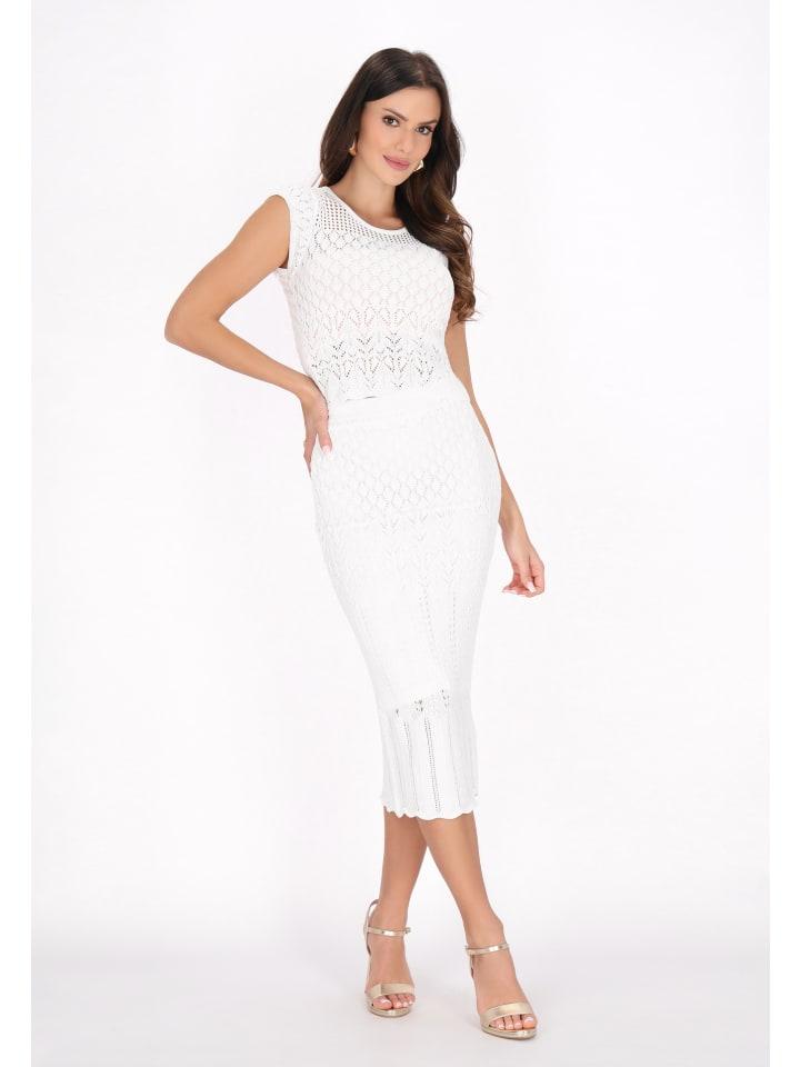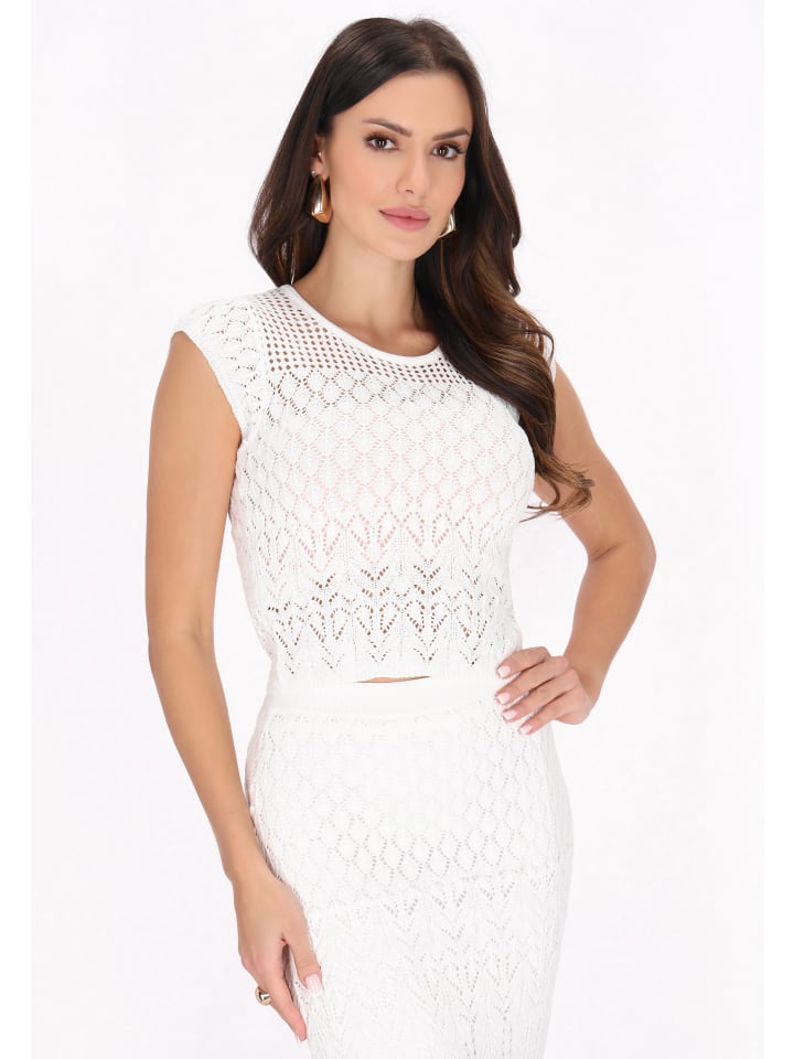 Elevate your style with this modern top featuring a chic knit pattern. With cap sleeves and a round neckline, it offers a regular fit perfect for everyday fashion. The ajour pattern and metallic thread details add a chic touch to the casual look for a comfortable and fashionable look. A must-have item from the Fashion Look Collection!