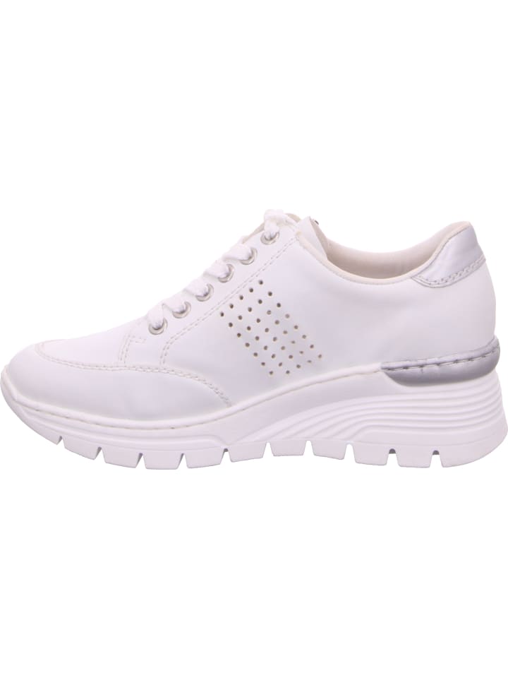 Они следуют за вами повсюду! Эти белоснежные кроссовки Rieker идеально подойдут на каждый день. Продуманное сочетание молнии и шнуровки обеспечивает идеальную фиксацию и позволяет легко надевать и снимать. Декоративные швы по бокам придают изделию нотку непринужденности. Очень легкая и амортизирующая подошва обеспечивает максимальный комфорт при ходьбе. Съемная стелька — это классная деталь, обеспечивающая практичный комфорт. Комфортная ширина G обеспечивает достаточно места для того, чтобы ноги чувствовали себя комфортно даже при длительном ношении. Итак, начнем!