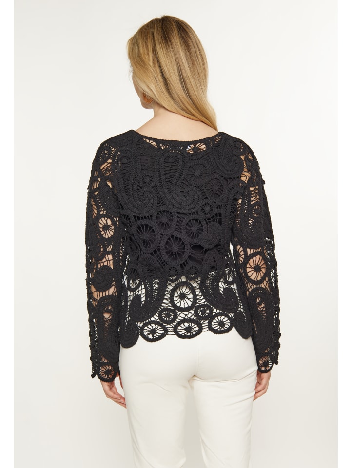 This stylish sweater has a regular fit with a round neckline and long sleeves. The embellished hem adds a touch of style to the knit ajour design, making it ideal for everyday wear. Its loose fit provides comfort while exuding a fashionable and casual look, perfect for layering or as a statement piece in your closet. It is part of the Fashion Look Collection.