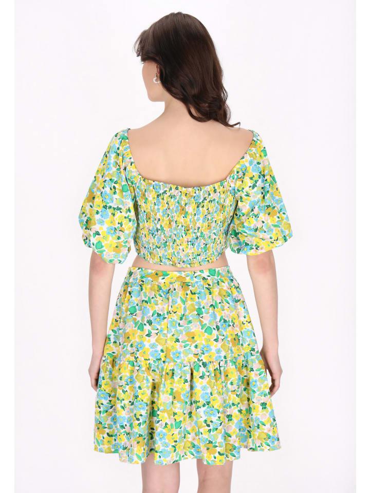 Introducing a top with open shoulders, buff sleeves and an elegant cut-out. Made from a woven fabric, it showcases a floral print that is perfect for spring and summer. The short cut ensures comfort, making this a must-have item for fashion lovers looking for stylish pieces. This top is part of the Spring Summer Collection.