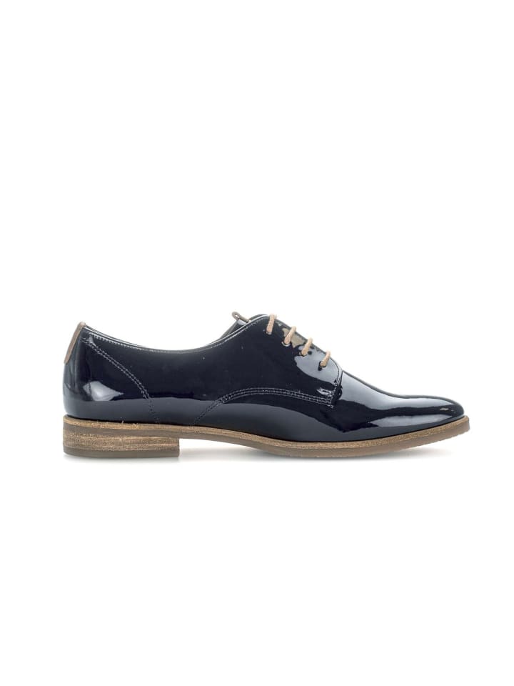 Туфли на шнуровке от удобного бренда Gabor Comfort являются классикой на все времена и должны быть в каждом хорошо укомплектованном обувном шкафу каждой следящей за модой женщины. Верхний материал синего цвета, выполненный из эффектной лакированной кожи, придает этим низким туфлям неповторимый вид. Полнота обуви G (средняя) означает, что низкие туфли идеально подходят для нормальной женской стопы с шириной выше средней. Полуботинки из линейки Comfort имеют больший объем в области подушечки носка и подъема стопы, а также дополнительное пространство для пальцев ног и обеспечивают устойчивость стопы. Материалы
