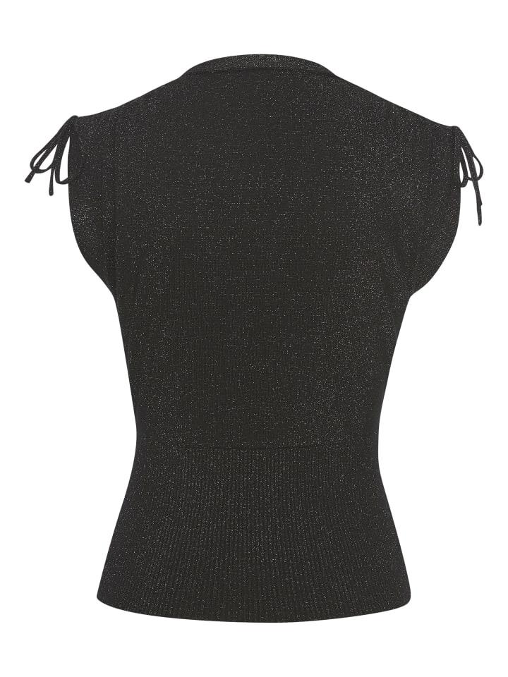Вязаный топ от Lascana. V-образный вырез с запахом. Плечо со шнурком для сборки. Очень широкий трикотажный манжет в рубчик, начинающийся от талии. Прямой подол. Плотная посадка по фигуре. Легкий трикотаж.