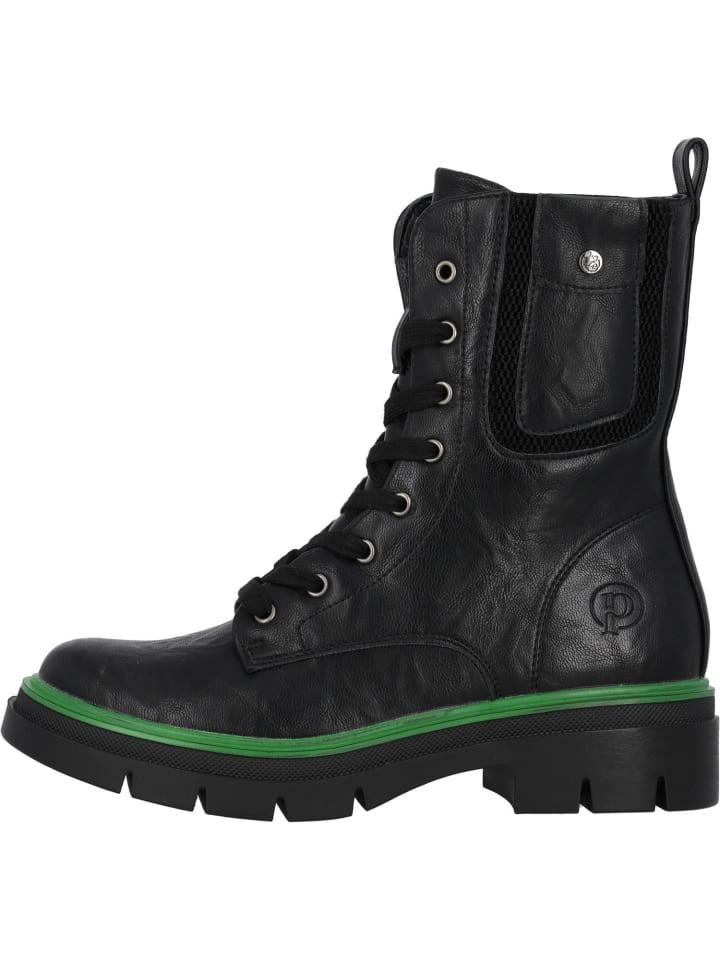 Откройте для себя ботинки на шнуровке «Palado Jazzly» из коллекции Palado by Sila Sahin. Эти ботинки впечатляют не только своим блочным каблуком высотой 5 см (в размере 37) и легкой подкладкой, но и декоративным элементом дизайна на голенище, который еще больше улучшает внешний вид. Практичная застежка-молния на внутренней стороне голенища высотой 17 см (размер 37) позволяет легко надевать и снимать обувь, а прочная подошва обеспечивает надежное сцепление на любых поверхностях. Современные детали делают эти ботинки абсолютно необходимым приобретением на осень. - Эксклюзивное сотрудничество: Сила Сахин представляет свою первую собственную коллекцию зимней обуви, вдохновленную ее индивидуальным стилем и модными предпочтениями. - Универсальные модели: от прочных ботильонов и стильных ботинок «челси» до элегантных сапог — в коллекции найдется подходящая обувь для любого случая. - Высококачественный заменитель веганской кожи: Верх изготовлен из прочных материалов неживотного происхождения, которые сочетают в себе элегантность кожи с высокой прочностью. - Легкая подкладка: удобная внутренняя подкладка обеспечивает нежное тепло в холодные дни, идеально подходит для прогулок или повседневной носки осенью и зимой. - Современный дизайн: стильные ботинки на шнуровке с яркими акцентами и практичными деталями, которые идеально сочетают в себе комфорт и модную универсальность. - Прочная протекторная подошва: прочная подошва обеспечивает отличное сцепление на мокрых и скользких поверхностях, идеально подходит для переменчивой погоды. - Простота ухода и долговечность: веганский материал легко чистится и сохраняет свою форму и внешний вид даже при частом использовании. Материалы