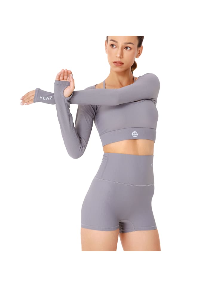 В этом образе просто все: потрясающий, стильный и спортивный. С комплектом КЛУБНОГО УРОВНЯ, состоящим из топа с длинным рукавом и шорт, вы всегда и везде будете идеально одеты. Топ с длинными рукавами и игривыми бретельками из эластичного материала и шорты с завышенной талией надежно поддерживают каждое ваше движение. Идеально подходит для занятий спортом, отдыха или просто для создания стильного уличного стиля. ОБЯЗАТЕЛЬНЫЙ вид спорта!