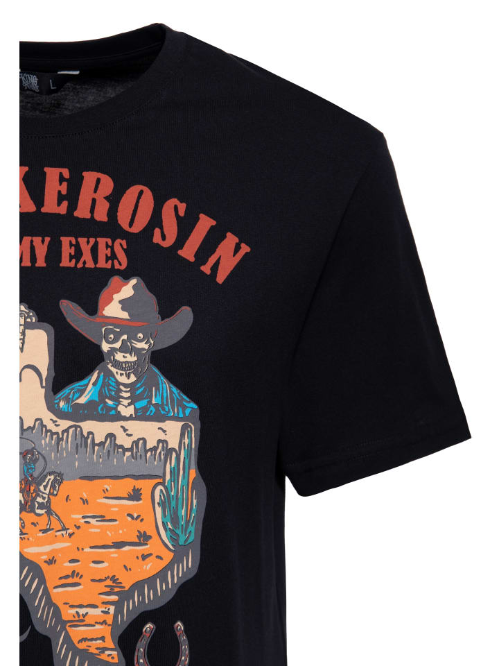 Продемонстрируйте свой техасский юмор с помощью футболки King Kerosin „Все мои бывшие живут в Техасе“! Привлекательный принт сочетает в себе скелет ковбоя с характерной формой штата Техас – настоящая достопримечательность с ноткой очарования Дикого Запада. Рубашка, изготовленная из высококачественного хлопка, отличается превосходным комфортом и долговечностью. Классический вырез с круглым вырезом и обычная посадка обеспечивают идеальную посадку, подходящую для любого приключения. Тонкая деталь с логотипом на подоле завершает дизайн. С этой рубашкой вы привнесете в повседневную жизнь образ Одинокой звезды!