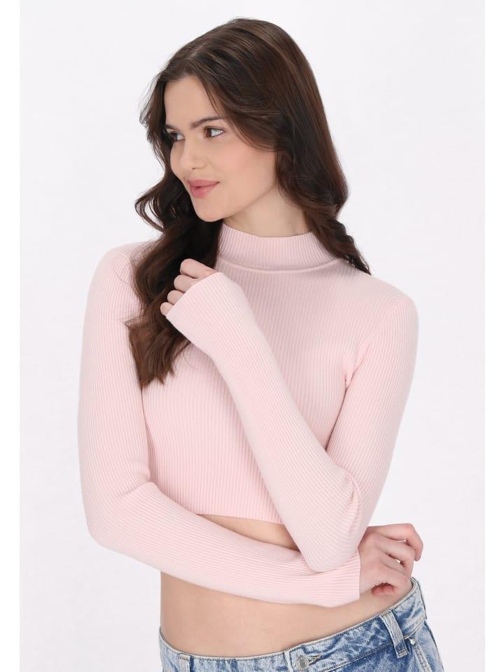 Transform your style with this on-trend slim-fit jumper, designed in a cropped silhouette and elegant stand-up collar. The ribbed knit fabric enhances its appeal, while the long sleeves ensure a snug fit at the wrists. Perfect for casual outings, this jumper is an essential addition to your wardrobe. It is part of the Comfy Collection.
