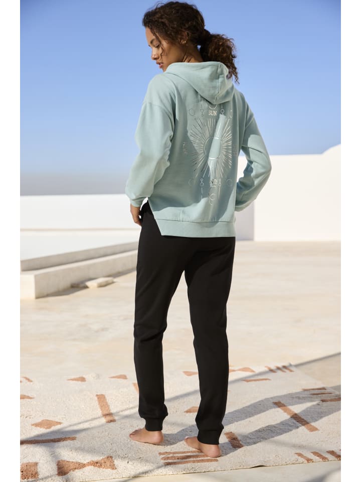 Толстовка с капюшоном от Buffalo. Капюшон на шнурке, манжеты в рубчик на рукавах и подоле. Сильно перекрытые плечевые швы. Большой принт на спине с эффектом блеска. Свободная посадка. Мягкая потогонная одежда.