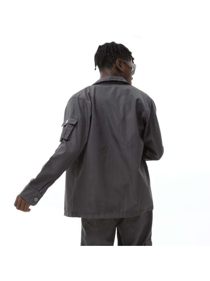 Этот свободный пиджак-рубашка из полиэстера с легкими открытыми плечами хорошо сочетается со многослойными фасонами, но его также можно носить отдельно как рубашку.