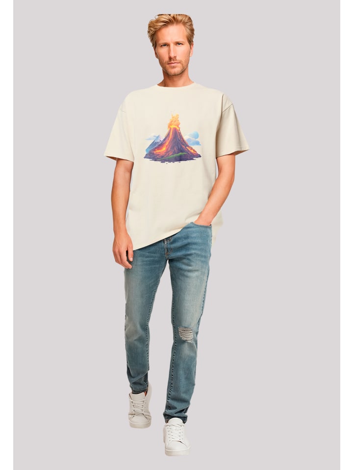 Весенняя футболка на День Святого Валентина, Пасха. Oversized Streetwear Style T-Shirt. Широкая посадка и широкие плечи. плотная и мягкая хлопчатобумажная ткань (240 гсм). Иллюстрация извержения вулкана