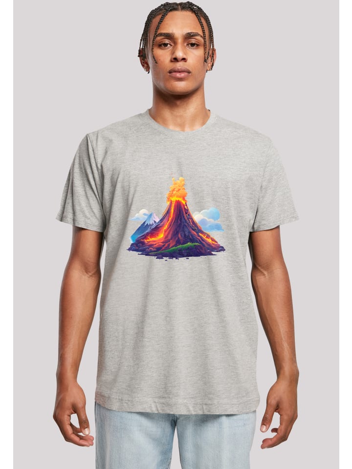 Весенняя футболка на День Святого Валентина, Пасха. Очень мягкая хлопчатобумажная ткань с высоким комфортом. Манжеты в рубчик на шее и двойная строчка по подолу. Облегающий, длинный и узкий крой. Иллюстрация извержения вулкана