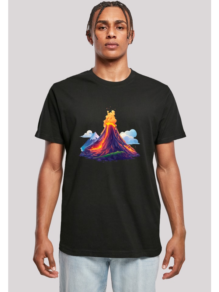 Весенняя футболка на День Святого Валентина, Пасха. Очень мягкая хлопчатобумажная ткань с высоким комфортом. Манжеты в рубчик на шее и двойная строчка по подолу. Облегающий, длинный и узкий крой. Иллюстрация извержения вулкана