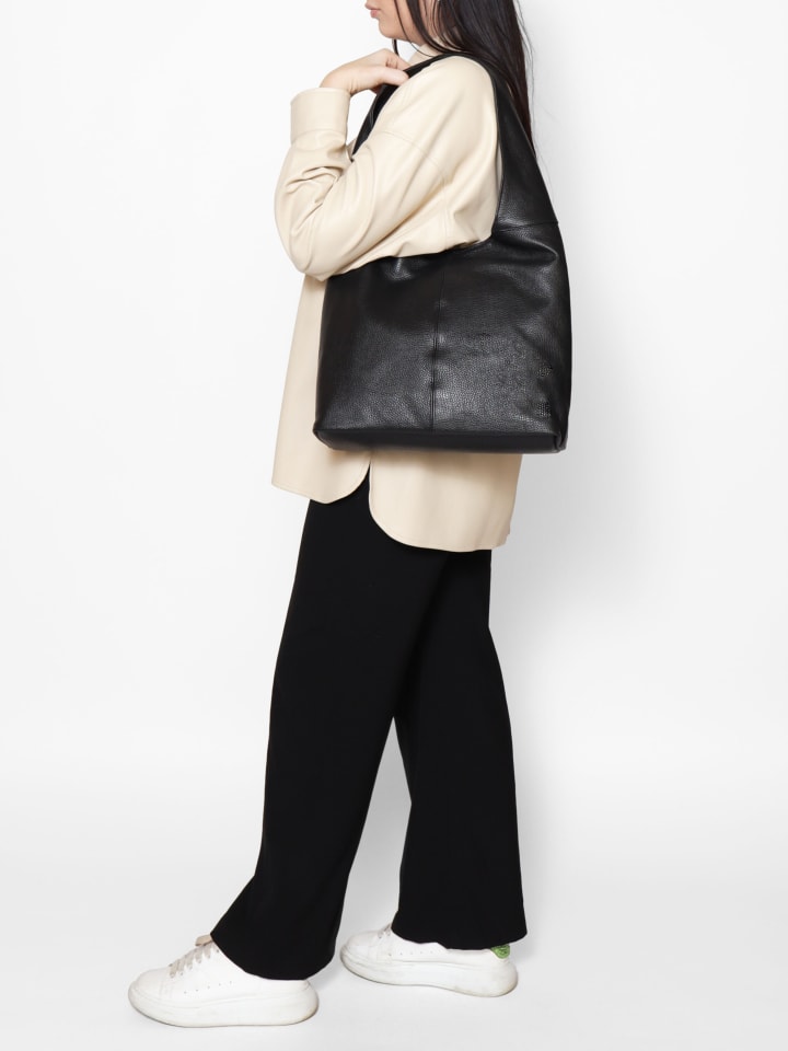 Женская сумка-хобо на молнии. два внутренних кармана на молнии и два открытых кармана. отсутствуют внешние карманы. отсутствует плечевой ремень. Кожаная ручка. два внутренних отделения. Наружный материал. Подкладка из 70% хлопка, внутри 30% полиэстера. Размеры: 39x55x13 см. Сделано в Италии 39x55x13 см