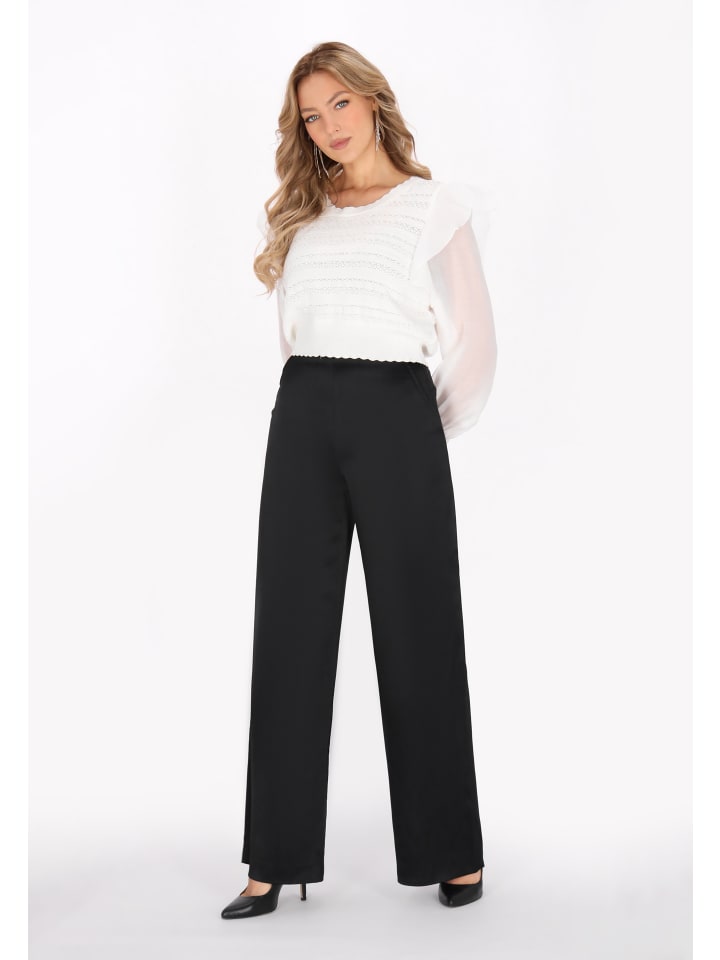 Introducing a stylish women's sweater with a cropped silhouette, round neckline and lantern sleeves for a romantic touch. Featuring an openwork pattern, this sweater showcases decorative ruffles on smooth long sleeves for a comfortable yet fashionable look. Perfect for casual and romantic looks from the Fashion Look Collection.