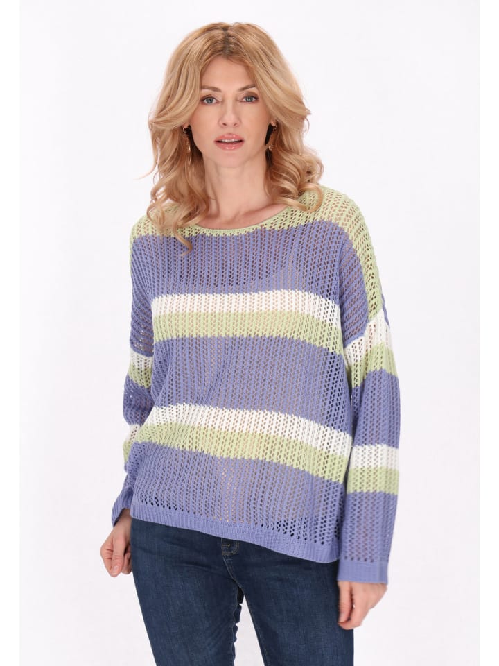 Immerse yourself in the charm of this knit sweater with a loose fit and a boat neckline. It features long sleeves with dropped shoulders, so it exudes a fashionable look. Openwork mesh decorated with stylish stripes adds a chic touch to your styling. Ensure a comfortable and fashionable look with this sweater from our Fashion Look Collection.