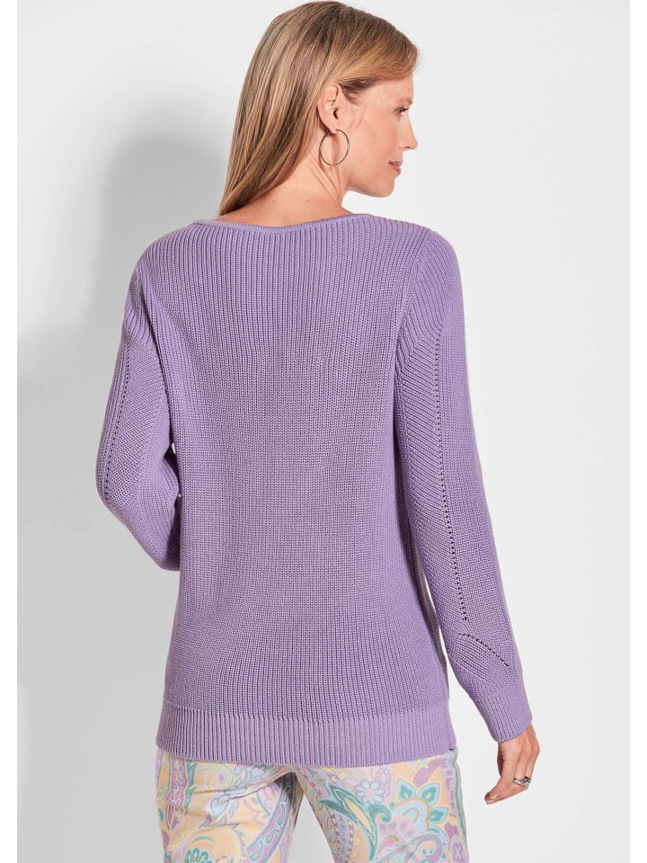 Свитера сложной вязки в рубчик с красивыми узорчатыми деталями, которые умело подчеркивают переднюю часть и длинные рукава. С женственным вырезом-лодочкой и манжетами в рубчик по подолу. Классически стильная модель из приятного для кожи хлопка, не требующего особого ухода, которая доставит вам массу удовольствия! Длина около 67 см в гр. 46, около 63 см в гр. 23.