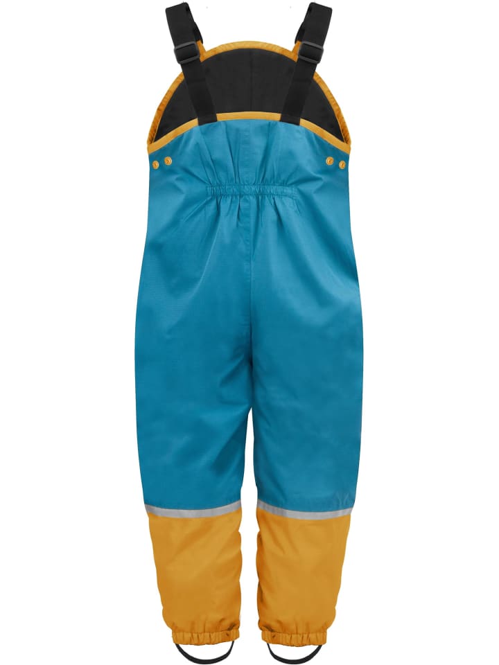 С нашими водонепроницаемыми комбинезонами „Твисп“ дети будут хорошо подготовлены к любым приключениям под дождем и в сырую погоду! Изготовленный из 100% переработанного полиэстера массой 300 тонн, он не только впечатляет своей функциональностью, но и экологичностью. Внутренняя часть отделана мягким флисовым слоем из переработанного материала, что обеспечивает приятное тепло и комфорт при ношении. Брюки имеют полностью сварные швы, надежную пропитку DWR, не содержат ПФУ и обеспечивают впечатляющий напор воды 6000 мм, а воздухопроницаемость 3000 г / м2 / 24 ч. Благодаря этому вашему ребенку будет сухо и комфортно даже в условиях сильного ливня. Красочный двухцветный дизайн делает дождевые брюки не только функциональными, но и по-настоящему привлекательными. В брюшной сумке с водонепроницаемой молнией YKK можно надежно хранить найденные сокровища или ключи. Эластичные регулируемые подтяжки, эластичный пояс на спине и регулируемые защелки под мышками гарантируют простоту надевания и снятия, оптимальную посадку и неограниченный диапазон движений. Кроме того, петли для ног предотвращают соскальзывание брюк – идеально подходят для занятий спортом, скалолазания и игр.