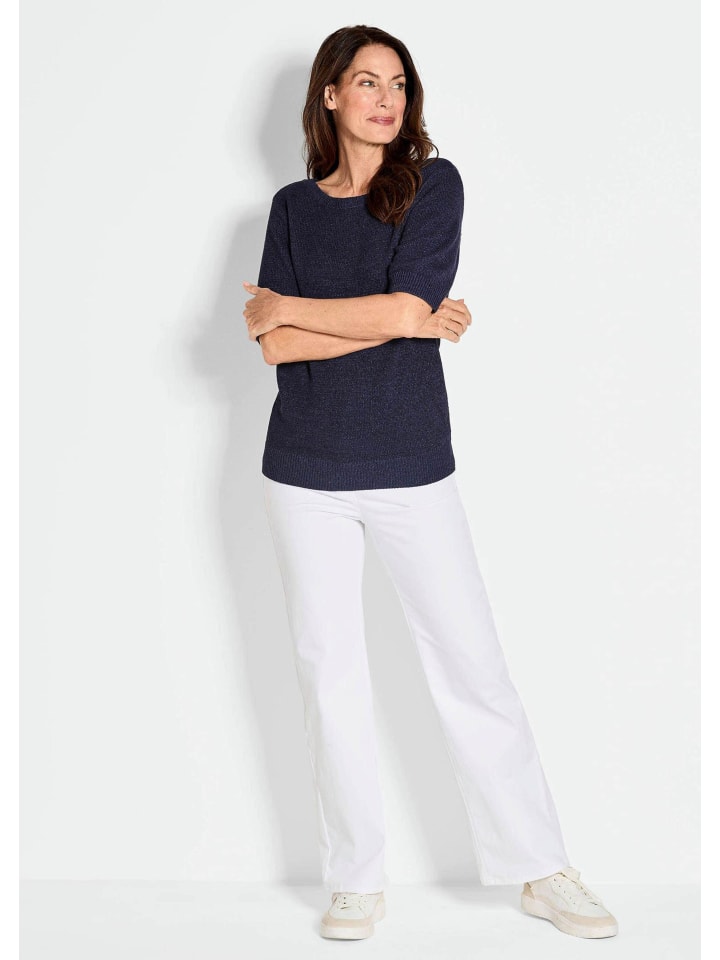 Свитера из легкой в уходе ленточной пряжи, которые приятно охлаждают кожу и особенно удобны в носке благодаря содержанию хлопка. В прямой посадке с высококачественными трикотажными рукавами средней длины. Вырез подлодки выполнен с узким ребристым ободком. Ребристые манжеты на всех подолах. Простая комбинированная модель, которую можно хорошо сочетать даже с юбками! Длина около 65 см в гр. 46, около 61 см в гр. 23.