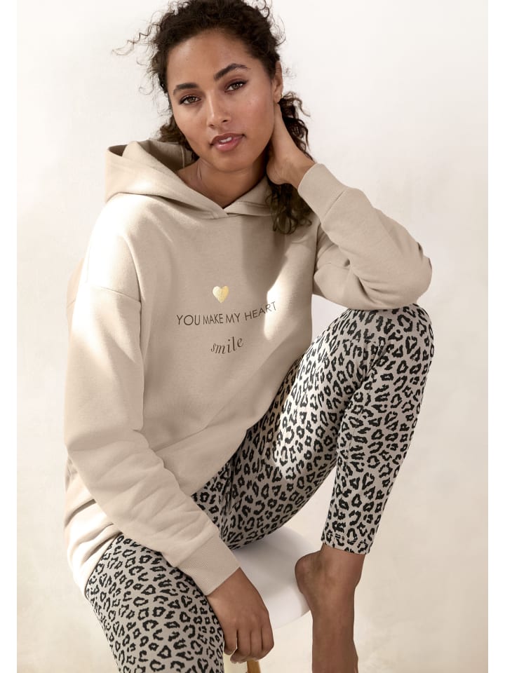 Толстовка с капюшоном от Lascana. Statementprint спереди. Манжеты в рубчик на рукавах. Прямой подол. Облегающая свободная посадка с накладными плечевыми швами. Мягкое качество потоотделения.
