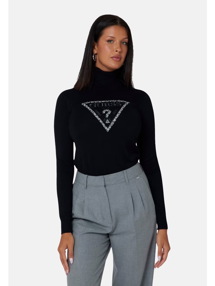 Откройте для себя элегантный женский свитер "ПАЙПЕР" от Guess. Этот свитер отличается стильной водолазкой и длинными рукавами. Манжеты в рубчик и стежок на этикетке придают ему особый вид, а отделка стразами и декоративным бисером добавляет нотку гламура. Благодаря эластичному качеству он обеспечивает идеальную облегающую посадку и приталенный крой. Модный аксессуар для любого гардероба.