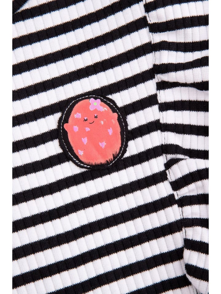 Откройте для себя уникальную футболку в рубчик с длинным рукавом, которая станет любимым предметом гардероба вашей дочери. Сделанный из мягкого хлопка с оттенком эластана, он обеспечивает комфорт и свободу движений, идеально подходит для повседневных приключений. Классический черно-белый полосатый узор добавляет элегантности, а милые оборки на плечах добавляют девичьего акцента.