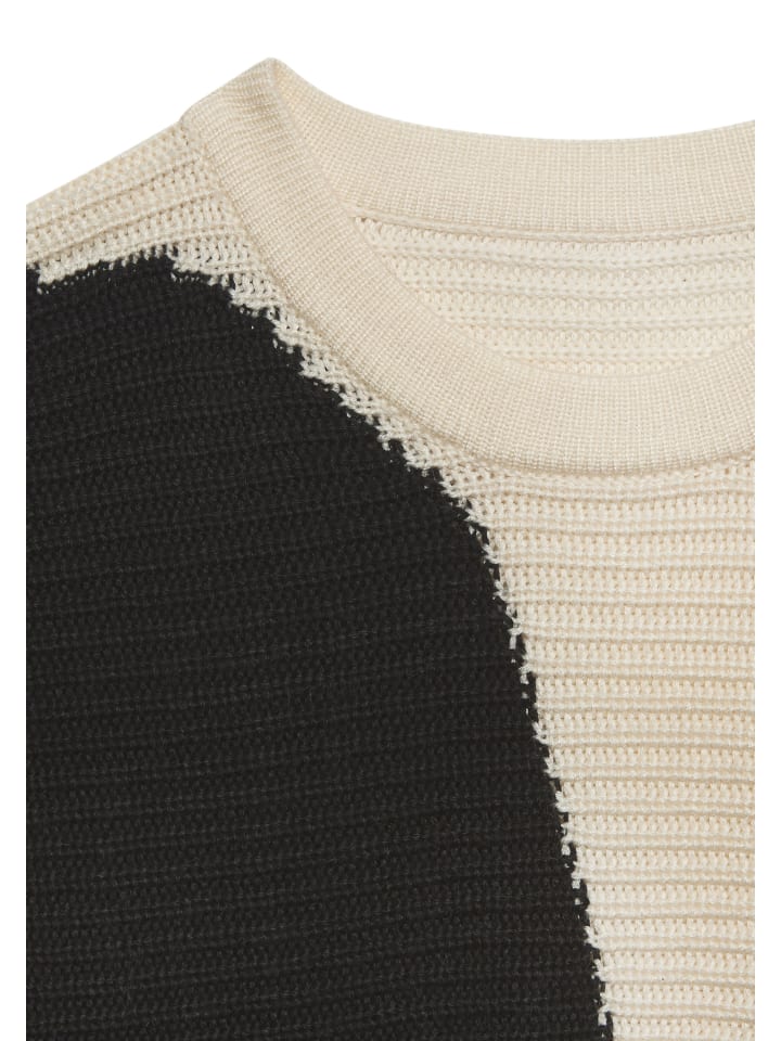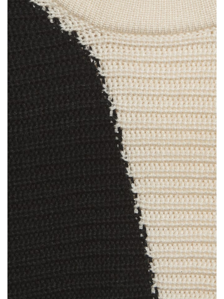 Стильный свитер от Vivance. Волнообразная цветовая блокировка. Круглый вырез и длинные рукава-летучие мыши с манжетами в рубчик. Прямой подол свитера. Мягкий на ощупь трикотаж в рубчик.