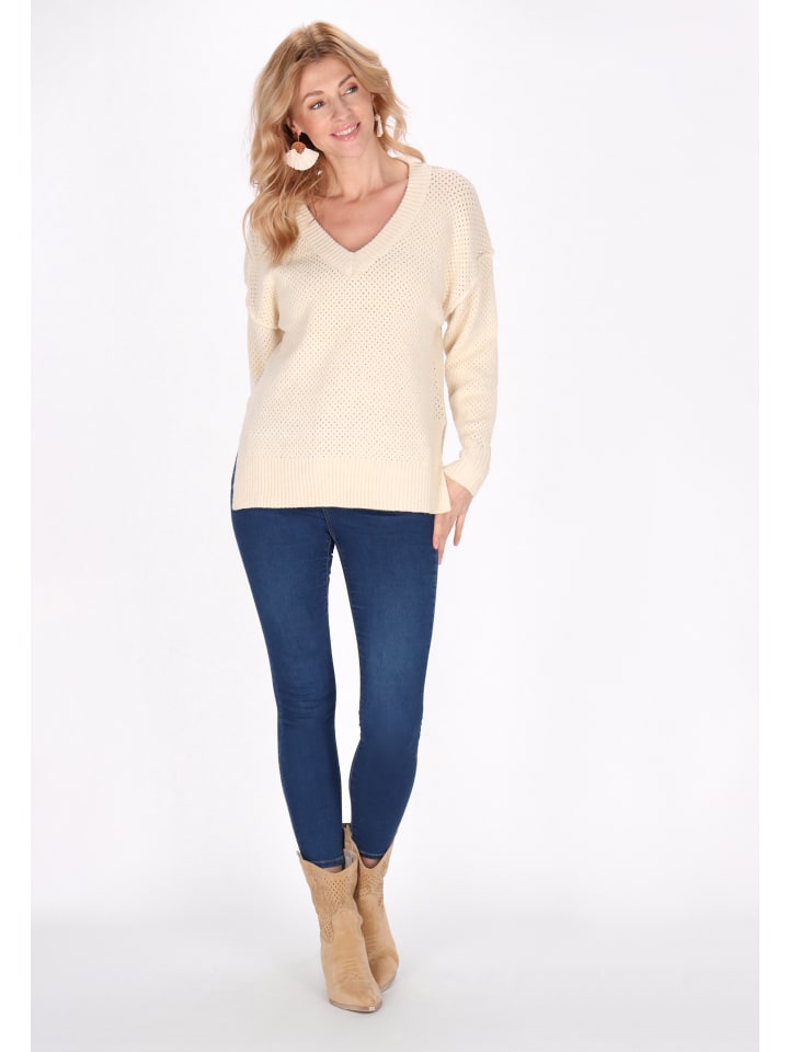 Elevate your everyday style with this regular fit knit sweater. With a deep V-neckline and long sleeves, it has dropped shoulder seams for a casual touch. Made of lightweight openwork fabric, it features raw-edge trims and stylish slits. This cozy sweater is perfect for layering or wearing solo for comfortable styling. It is part of the Comfy Collection.