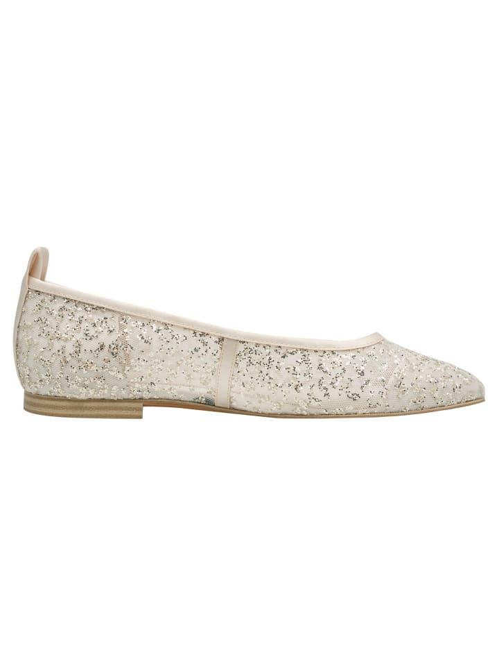Откройте для себя волшебных балерин, которые сочетают в себе элегантность и игривость в уникальном дизайне. Тонкий текстильный материал, украшенный блестящими элементами, придаст вам праздничный вид, а плоская легкая подошва обещает максимальный комфорт. Эти балетки идеально подходят для особых случаев, таких как свадьбы и вечеринки, они сияют в нежно-бежевых и золотых тонах, расставляя сверкающие акценты. Позвольте себе поддаться соблазну элегантной формы и округлого кроя этих стильных аксессуаров, которые идеально дополнят ваш наряд. - Максимальный комфорт благодаря технологии TOUCH-IT