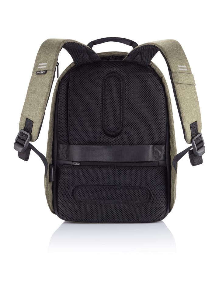 Противоугонный рюкзак от XD Design отличается множеством функций безопасности. Изготовленный из экологически чистого, водостойкого, устойчивого к разрывам и порезам материала, он оснащен запирающимися молниями и противоударными отделениями с мягкой подкладкой. Благодаря эргономичной несущей системе он обеспечивает оптимальную вентиляцию и распределение нагрузки. Среди других замечательных функций: широко открывающееся основное отделение с тремя регулируемыми положениями, USB-порт для удобной зарядки в дороге, функция подключения задней тележки, держатель для солнцезащитных очков, мягкий отсек для ноутбука с диагональю экрана до 15,6 дюймов (39,5 см), мягкий отсек для планшета, защита RFID от кражи данных и многое другое.