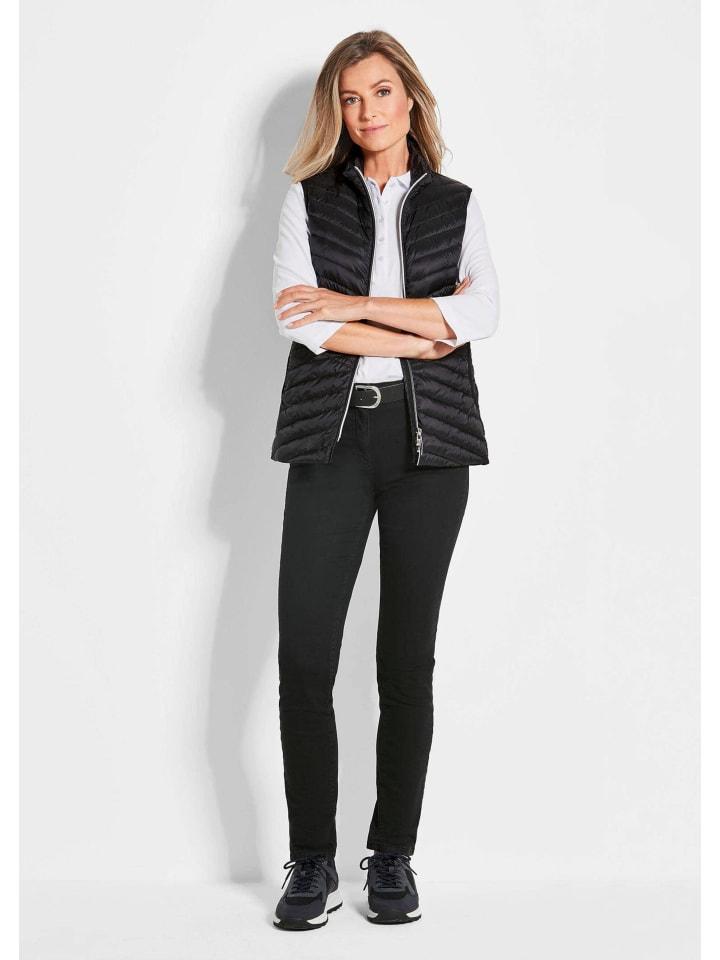 Стеганый жилет из настоящего пуха. Набивка из пуха и перьев делает модель особенно легкой и при этом сохраняет тепло - идеально подходит для переходного периода или для прохладных вечеров. Изысканная поперечная строчка, пересекающаяся под углом на талии, придает элегантный вид. Ручка кармана и пройма имеют эластичную окантовку. С удобной 2-сторонней застежкой-молнией. Ваша новая любимая модель, которая умеет убеждать легкостью и долговечностью! Длина ок. 69 см в гр. 46, около 65 см в гр. 23.