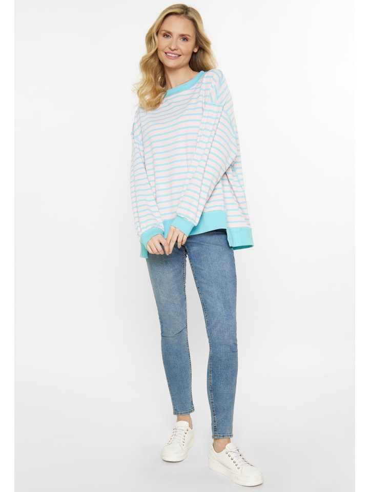 Ощутите непринужденный стиль с этой толстовкой свободного кроя, созданной для максимального комфорта. Круглый вырез и длинные рукава-фонарики создают шикарный силуэт, а спущенный крой плеча подчеркивает повседневный стиль. Украшенная модным полосатым узором, эта толстовка идеально подойдет любителям повседневной моды, ищущим стильные, но удобные дополнения к повседневной коллекции. - Толстовка свободного кроя с круглым вырезом и длинными рукавами