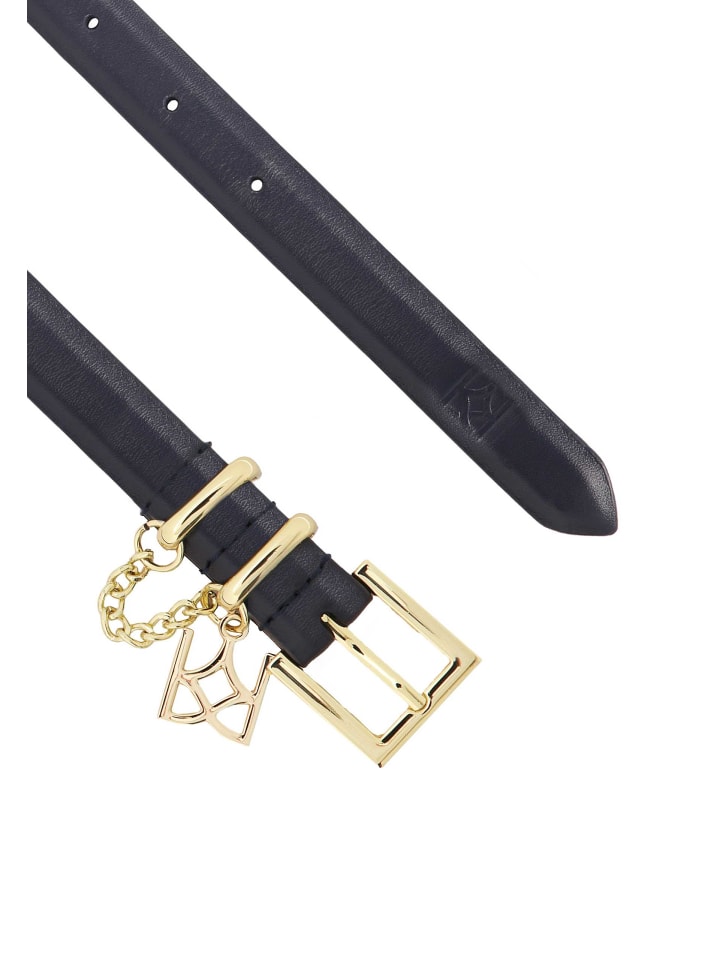 Черный женский пояс, изготовленный из высококачественной кожи с рубцами, выделяется золотой блестящей цепочкой, прикрепленной к двум металлическим петлям с декоративной отделкой в виде монограммы КАЗАРА. Этот тонкий пояс добавляет нотку шика не только повседневному наряду, но и менее формальному, повседневному.