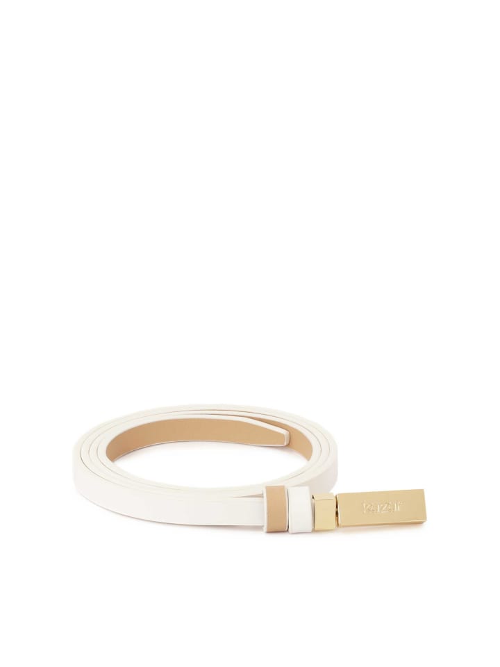 Женский пояс, изготовленный из высококачественной натуральной кожи, представляет собой элегантный и универсальный аксессуар, сочетающий в себе функциональность и роскошный дизайн. Узкий пояс выполнен в классическом черном цвете, что позволяет сочетать его с разными стилями и случаями. Центральным элементом ремня является пряжка золотого цвета, украшенная тонким тисненым логотипом KAZAR, что придает ему престиж и элегантность. Сочетание золотистых деталей с черной и золотистой кожей создает изысканную и модную композицию, которую можно носить как с элегантными, так и с повседневными нарядами.