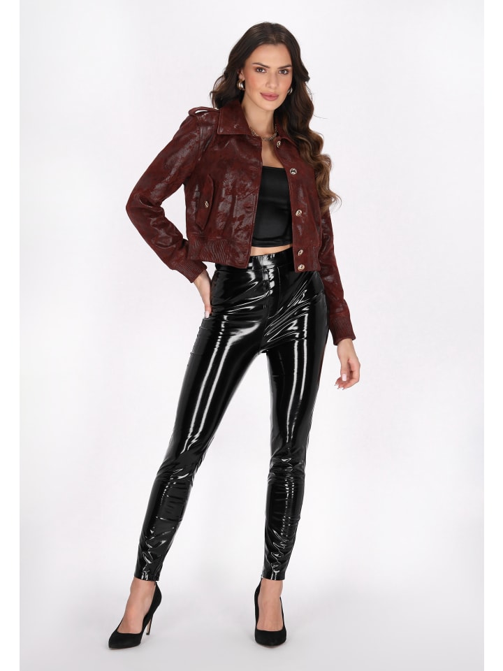 - Regular Leather Jacket With ClassicCollar And Long Sleeves