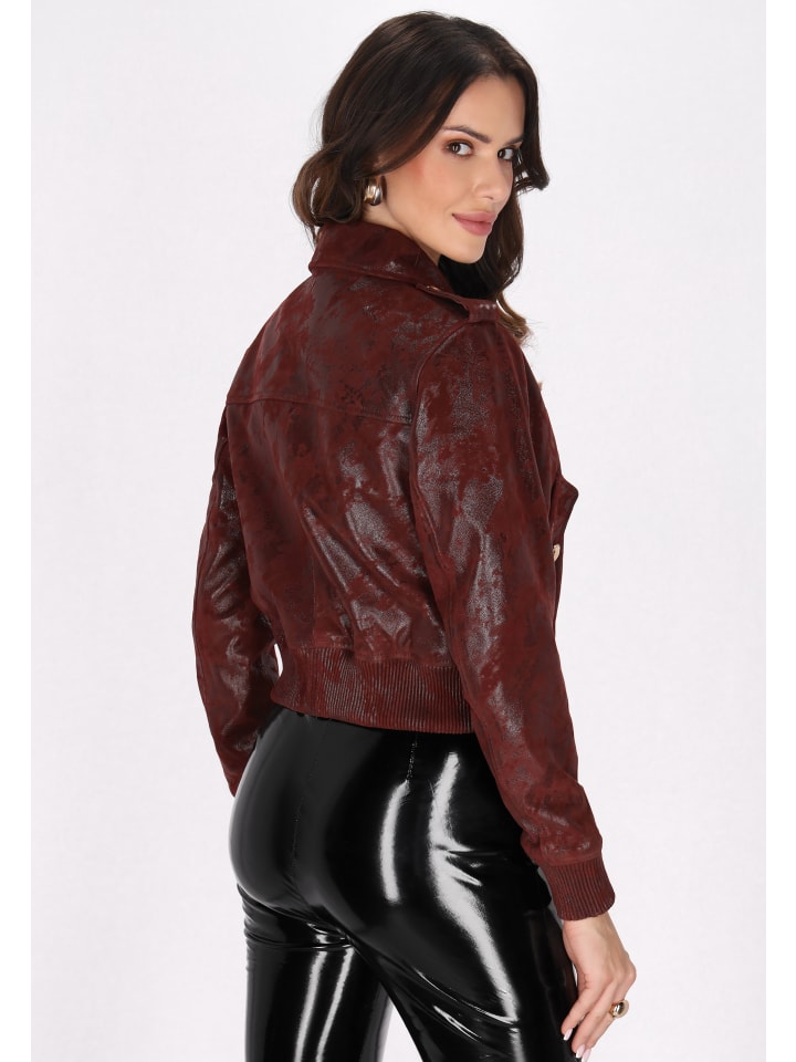 Discover this stylish leather jacket with a classic collar and long sleeves. It features a regular fit, button closure, lapels and epaulettes. The ribbed hem provides comfort, while the shiny goat suede adds a modern touch to everyday fashion. A must-have for lovers of casual chic from our Fashion Look Collection.