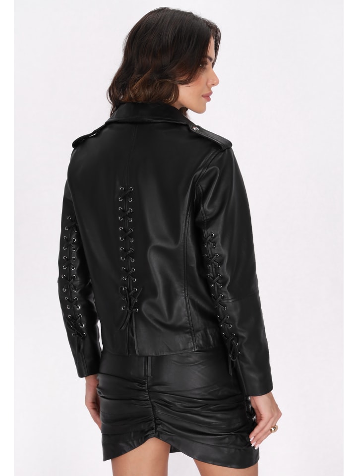 Unleash your inner rebel with this biker jacket, a staple in the Fashion Look Collection. The regular fit silhouette is enhanced by a lapel collar, long sleeves and zip pockets for practicality. Epaulets add a sleek touch to this lambskin jacket, while the cropped length exudes a modern and fashionable vibe, perfect for any stylish occasion.
