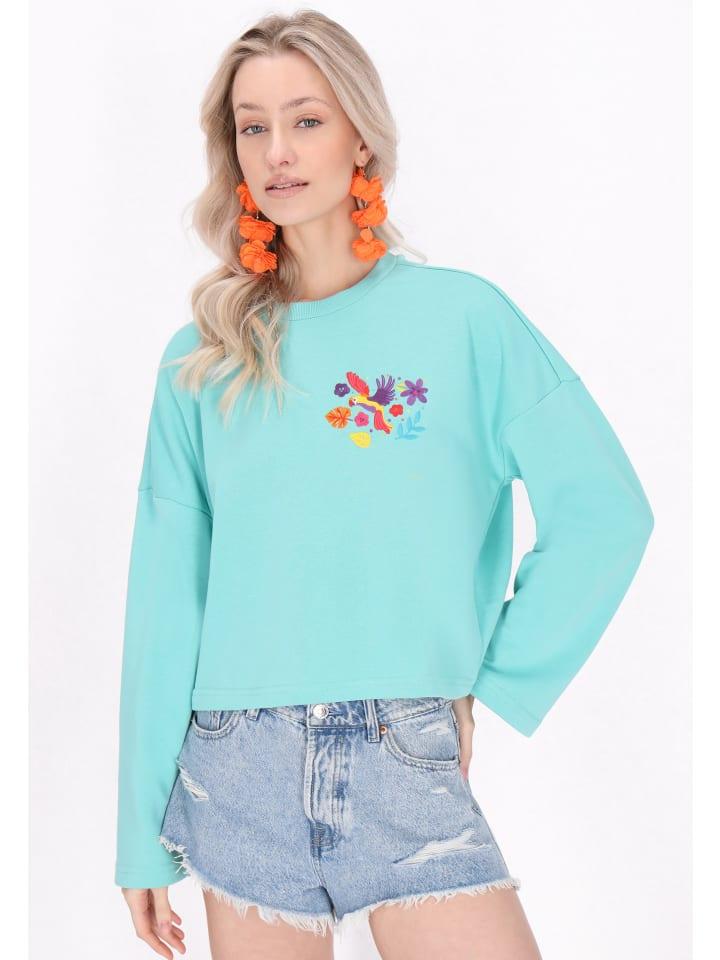 Дополните свой гардероб этой толстовкой. Свободный крой и спущенная линия плеча обеспечивают повседневный комфорт. Круглый вырез и длинные рукава подчеркивают повседневную привлекательность модели. Украшенная замысловатой цветочной вышивкой, эта трикотажная толстовка из коллекции Boho — непринужденный и стильный образ для создания непринужденного, но модного образа. - Толстовка свободного кроя с круглым вырезом и длинными рукавами