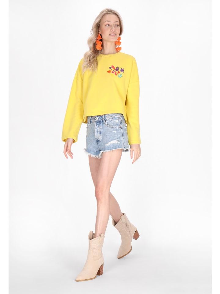Дополните свой гардероб этой толстовкой. Свободный крой и спущенная линия плеча обеспечивают повседневный комфорт. Круглый вырез и длинные рукава подчеркивают повседневную привлекательность модели. Украшенная замысловатой цветочной вышивкой, эта трикотажная толстовка из коллекции Boho — непринужденный и стильный образ для создания непринужденного, но модного образа. - Толстовка свободного кроя с круглым вырезом и длинными рукавами