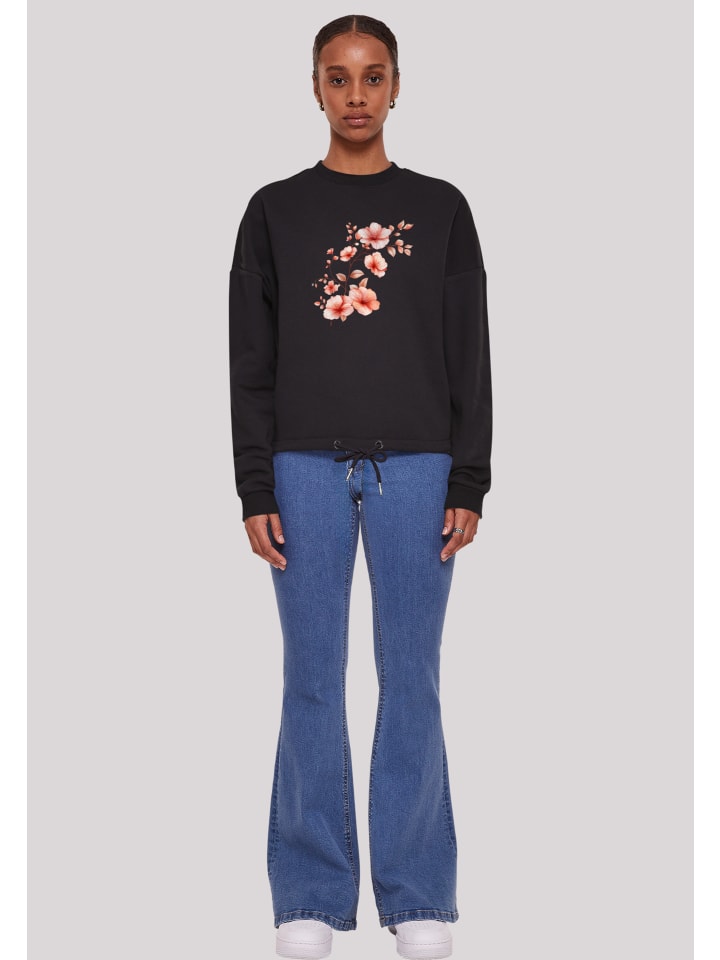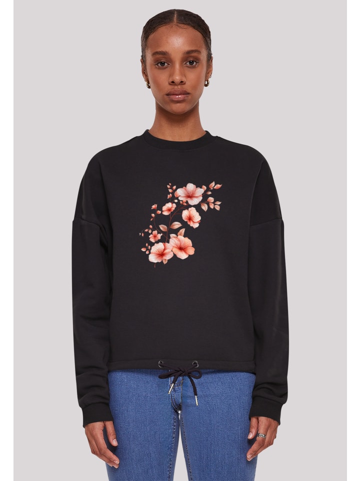 Весенняя толстовка ко Дню святого Валентина и Пасхе. Свободный круглый вырез из мягкого трикотажного материала. Коробчатая форма, которая красиво и свободно падает. Широкие рукава и манжеты на шнурках. Розовая цветочная ветка 3D