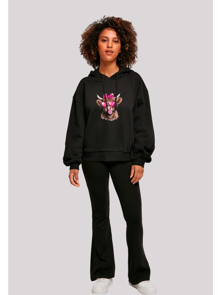 Весенняя толстовка с капюшоном ко Дню святого Валентина и Пасхе. Уютная женская толстовка с капюшоном оверсайз. Удобный свободный крой. Широкие ребристые манжеты и пушистый капюшон. Подарок на День святого Валентина в виде коровы породы Хайленд с солнцезащитными очками и бантом