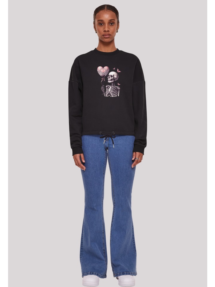 Весенняя толстовка ко Дню святого Валентина и Пасхе. Свободный круглый вырез из мягкого трикотажного материала. Коробчатая форма, которая красиво и свободно падает. Широкие рукава и манжеты на шнурках. Скелет держит воздушный шар в форме сердца